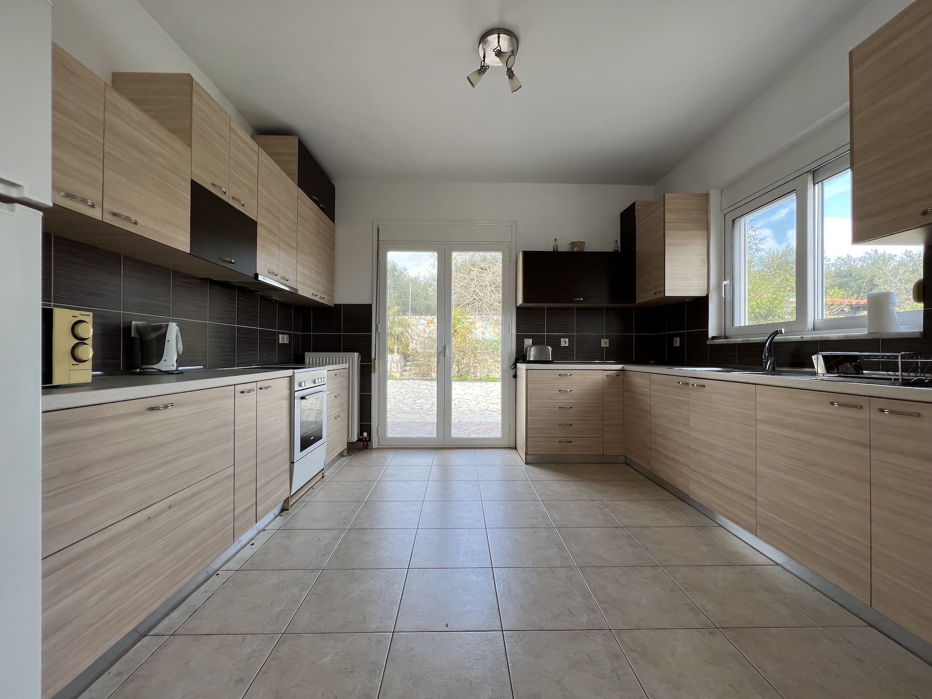 Η πλήρως εξοπλισμένη κουζίνα προσφέρει μια ευρεία γκάμα συσκευών και σκευών, παρέχοντας όλα όσα χρειάζεστε για να ετοιμάσετε άνετα και εύκολα τα σπιτικά σας γεύματα κατά τη διάρκεια της διαμονής σας.
