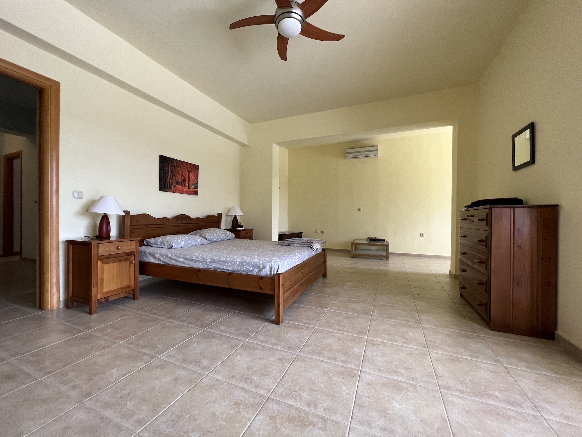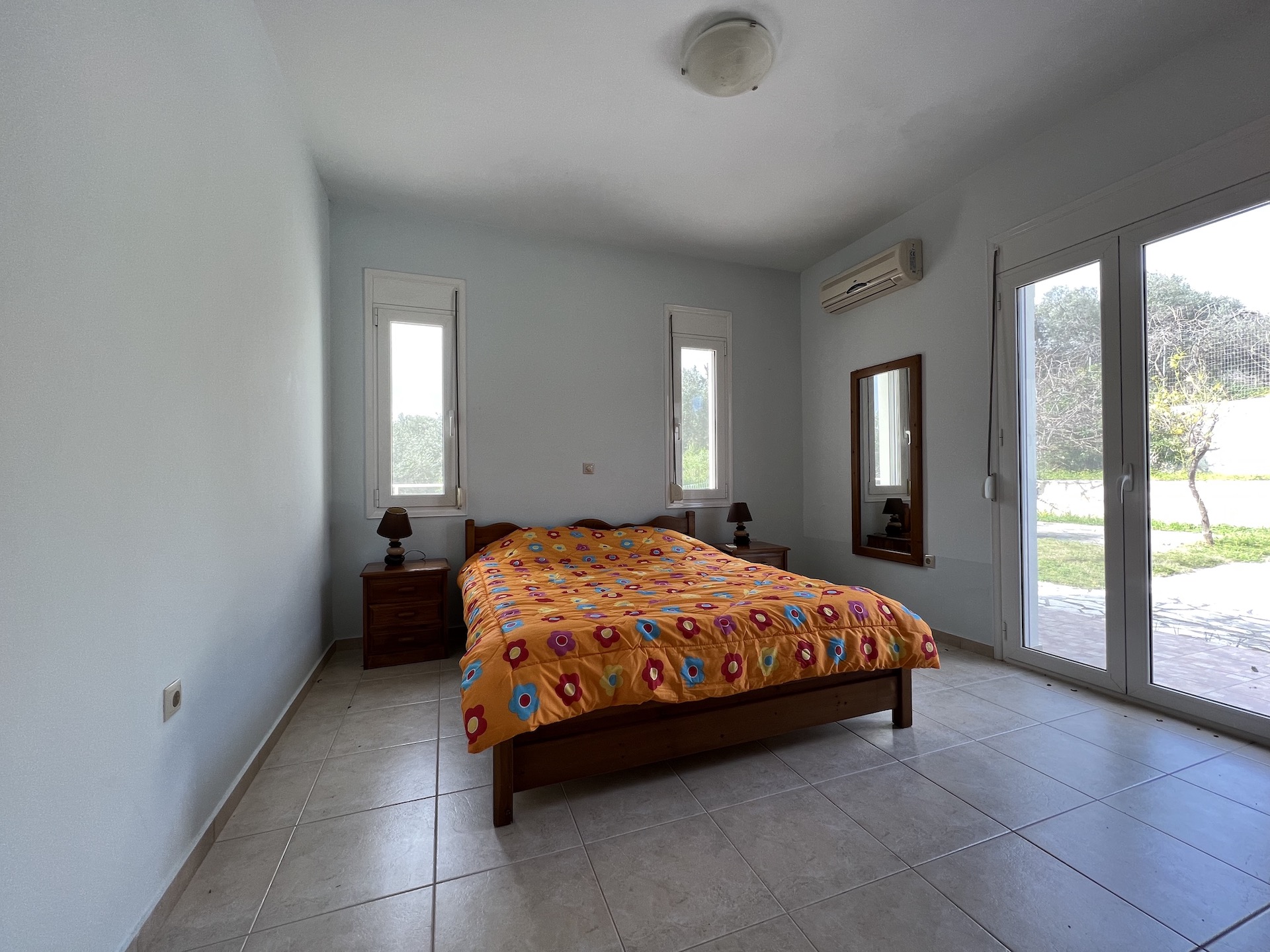 Στο ισόγειο, θα βρείτε το κύριο υπνοδωμάτιο, σχεδιασμένο για άνεση και χαλάρωση. Διαθέτει ευρύχωρη διάταξη με διπλό κρεβάτι και άπλετο φυσικό φως. Το δωμάτιο περιλαμβάνει ιδιωτικό μπάνιο και ευρύχωρες ντουλάπες, προσφέροντας πρακτικότητα για μεγαλύτερη διαμονή.