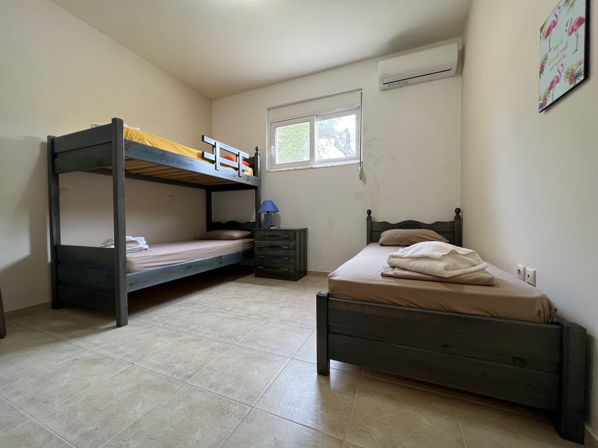 Εκτός από τη σουίτα στο ισόγειο, υπάρχουν δύο επιπλέον υπνοδωμάτια, το ένα με διπλό κρεβάτι και το άλλο με τρία μονά, καθιστώντας το ιδανικό για οικογένειες με παιδιά. Διατίθεται επίσης καναπές-κρεβάτι για επιπλέον φιλοξενούμενους, καθώς και παιδικό κρεβατάκι κατόπιν αιτήματος. Τέλος, στο ισόγειο υπάρχει και μπάνιο με πλήρη μπανιέρα, προσφέροντας επιπλέον άνεση και ευκολία.